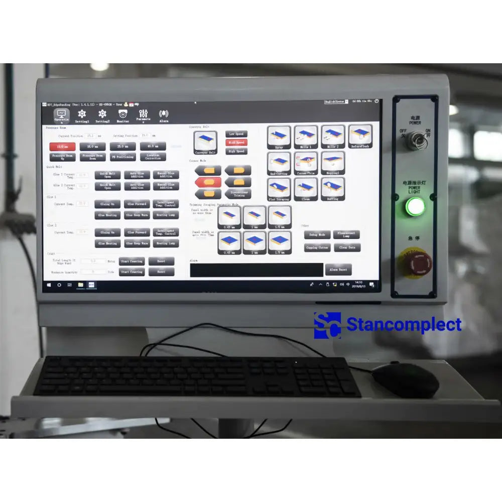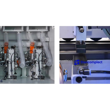 - Programuojamos proceso pertraukos ir klijų kaitinimo laikai (pvz. galima nustatyti, kad staklės bus paruoštos darbui 8:00, o per pietų pertrauką temperatūra sumažės, kad nedegintų klijų automatiškai).