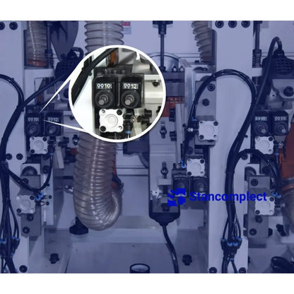 Frezavimo įrenginį galima reguliuoti skirtingiems briaunų storiams ir perjungti iš valdymo pulto.